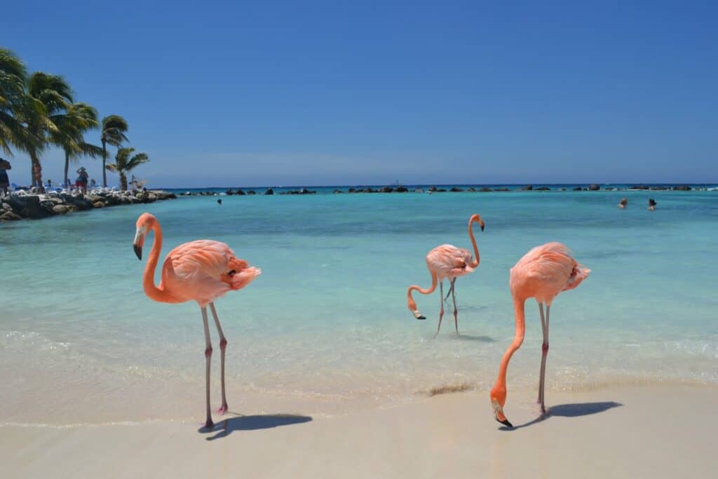 If you’ve spent any time researching Aruba on social media, no doubt you’ve encountered plenty of photos of bright pink flamingos. You’ve probably seen them strolling the beaches, their stick-like legs in the sugary sand with a gorgeous turquoise sea behind… and maybe a smiling selfie-taker alongside.