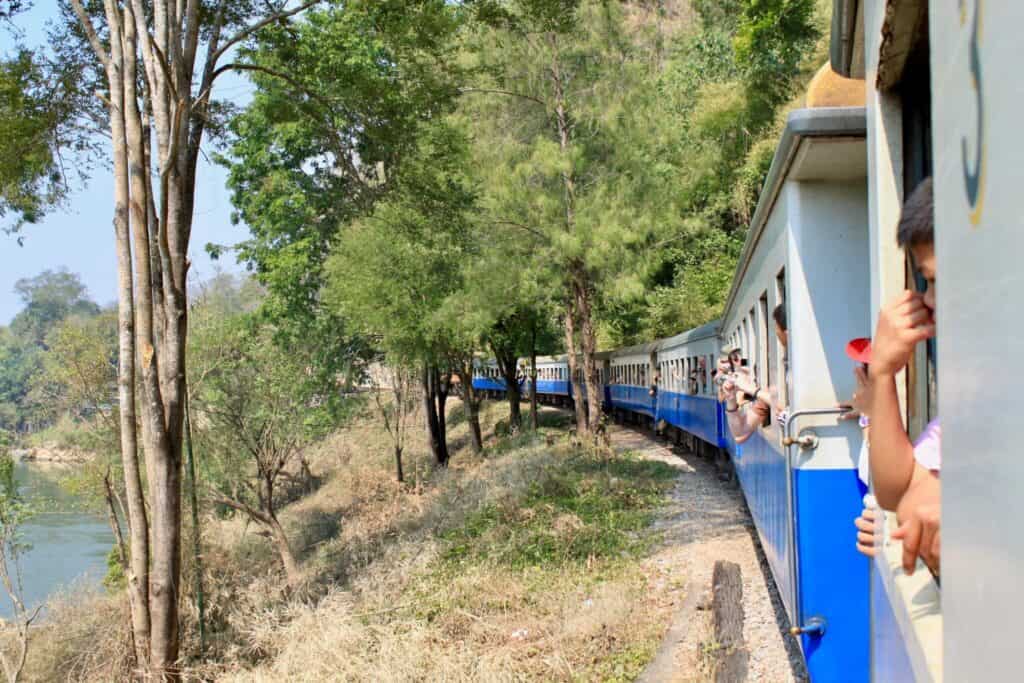 … We took more photos before returning to Tok. He led us to a train platform for what he promised was a beautiful ride along what I assumed to be part of the Death Railway. The three of us found ourselves in a carriage full of Thais, including a couple who wanted a photo with the white people. There were a bunch of kids right behind us, including one who kept making the most remarkably lifelike bird calls.