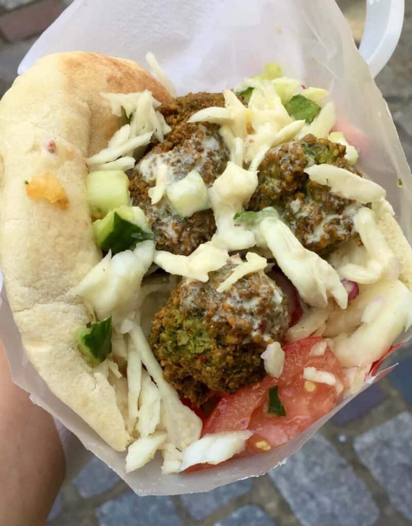 Lunch on the go in Paris‘s Jewish Quarter: a tasty handful of falafel!