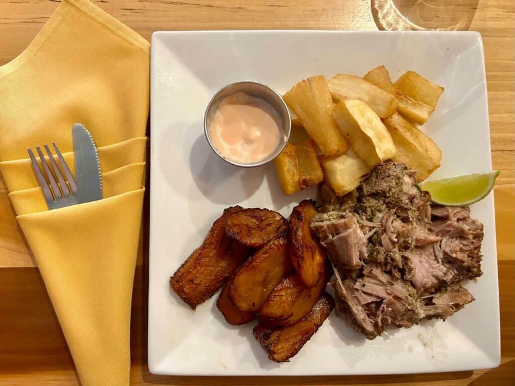Whenever I come home to visit my parents, Guante’s is at the top of my list of places to eat. I love their maduros (sweet plantains) and pernil (slow-cooked pork), as well as their chifrijo bowl, which pairs a protein of your choice with rice, beans, pickled slaw, pico de gallo, and a house sauce.