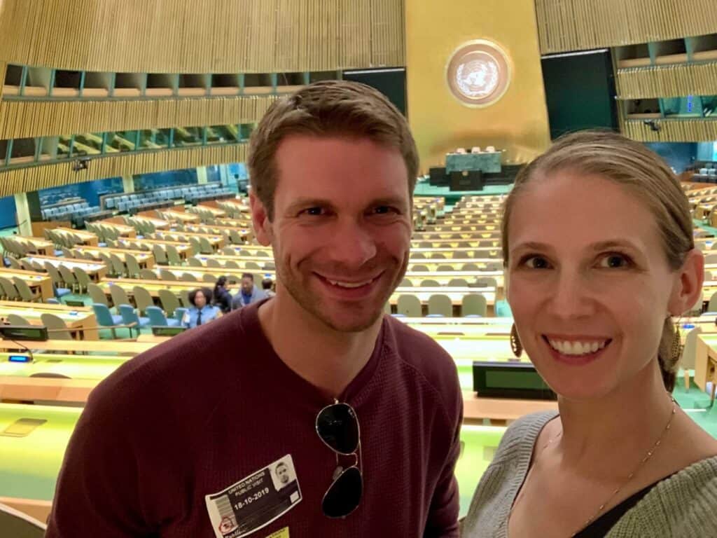 When M and I started planning our first overnight getaway after becoming parents, I’m pretty sure neither of us could have guessed that we would end up visiting the United Nations in New York City. But somehow there we were, five years to the day since our wedding and kid-free for the first time in almost a year, staring up at the huge, pancake-flat building that houses one of the most influential organizations on the planet.